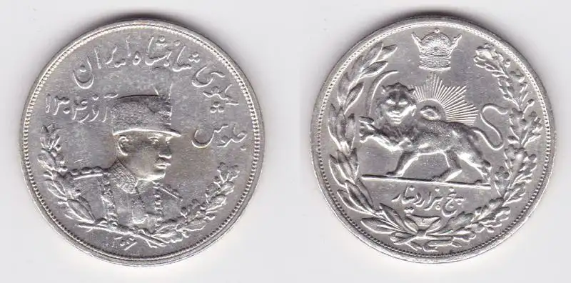 5000 Dinars 5 Qiran Silber M?nze Persien Iran 1929 ss/ vz (143660)