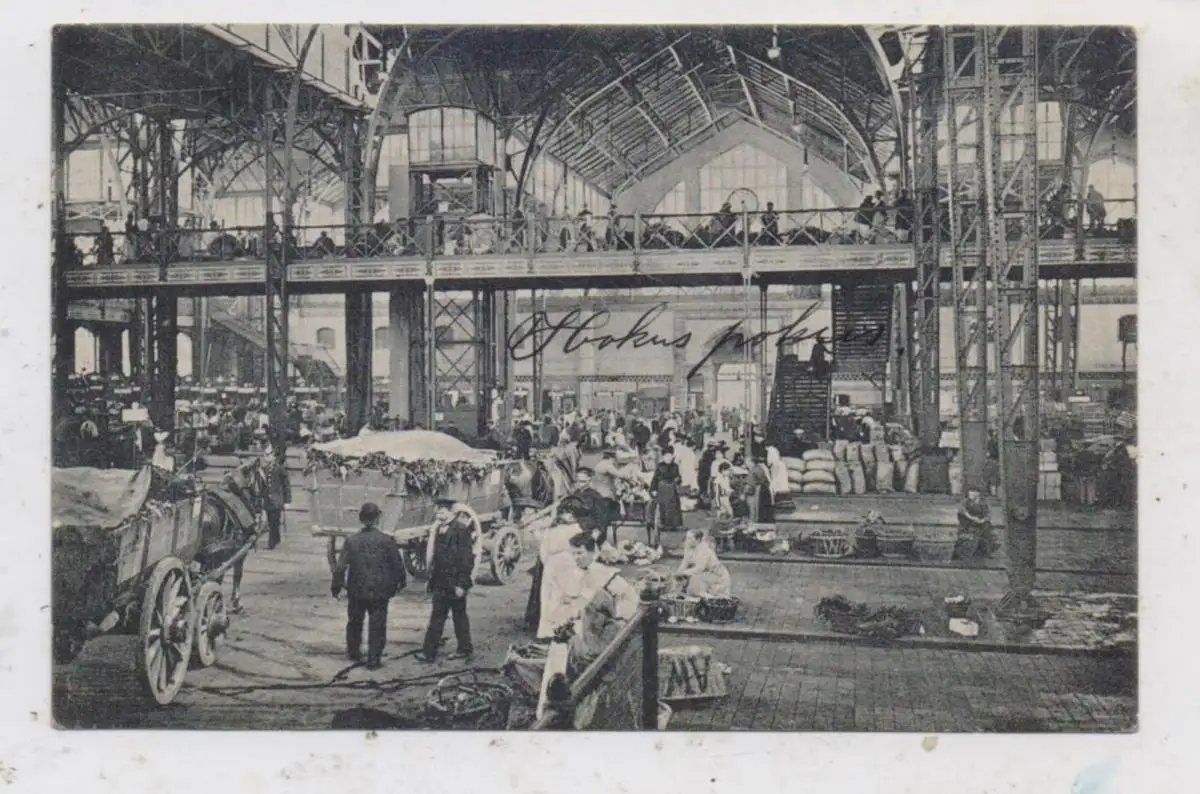 5000 KÖLN, Städtische Markthalle ( heute Maritim), Innenansicht, sehr belebte Szene, Trenkler 1907
