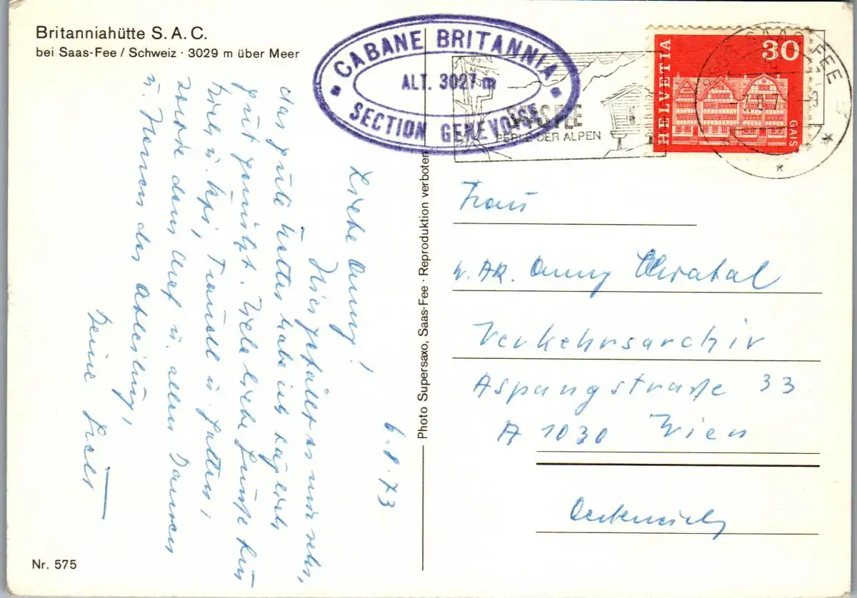 50652 - Schweiz - Saas Fee , Britanniahütte , Cabane Britannia - gelaufen 1973