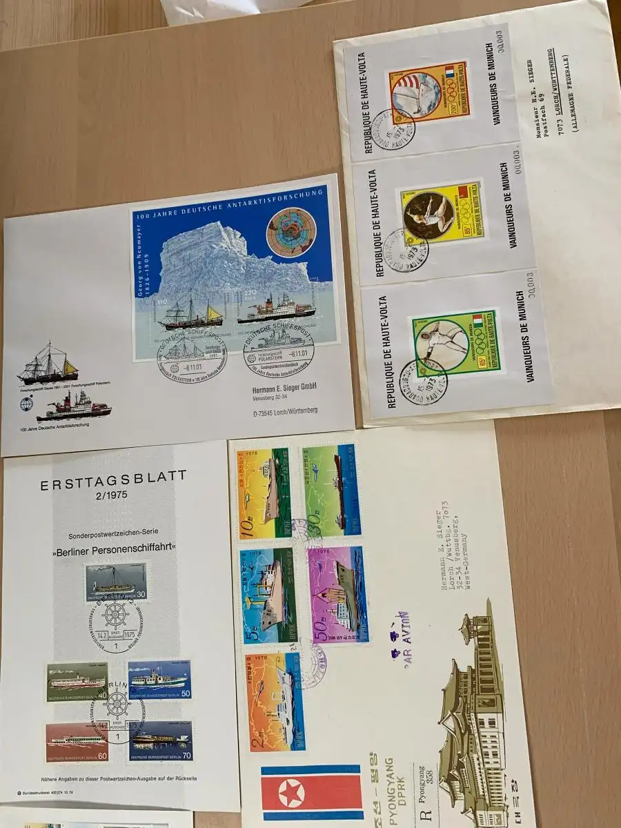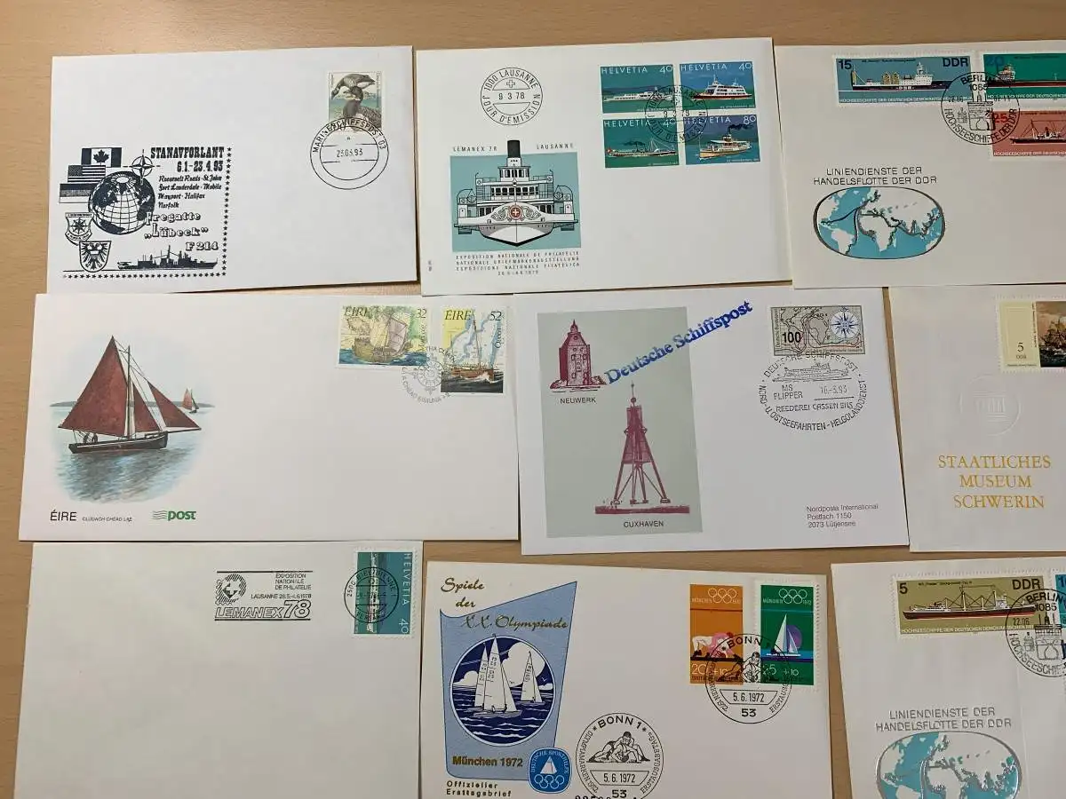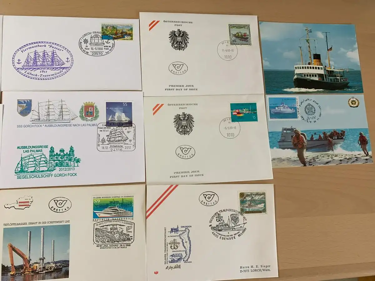 50x verschiedene Schiffe auf Briefen mit Stempel, covers with ships and cancel