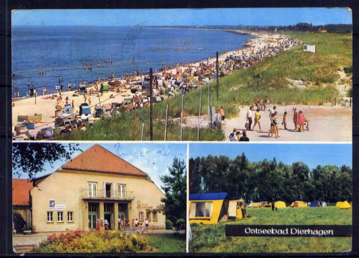 (5142) Dierhagen - beschrieben / DDR Mecklenburg-Vorpommern Strandkörbe Strand Ostseebad Zeltplatz