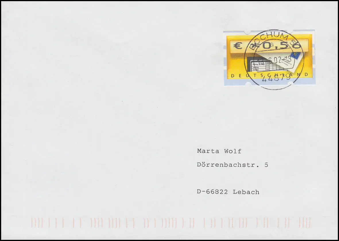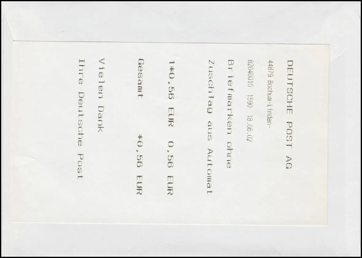 5.2 Samkyung 0,56 Euro als EF mit AQ, Fernbrief BOCHUM 18.6.2002, codiert