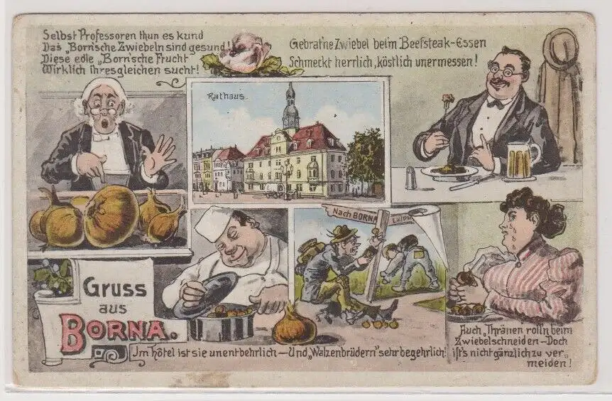 52620 Künstler Reim AK Gruss aus Borna - Rathaus, Bornaer Zwiebeln