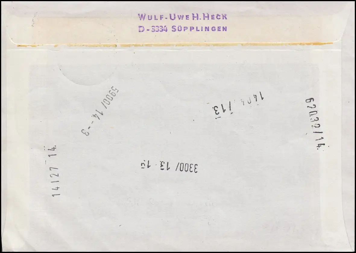 Fünferstreifen mit Nummer auf der unteren Marke, rückseitig postalische Vermerke, befördert nach Siegen - Ersttag war der 17.5.1977