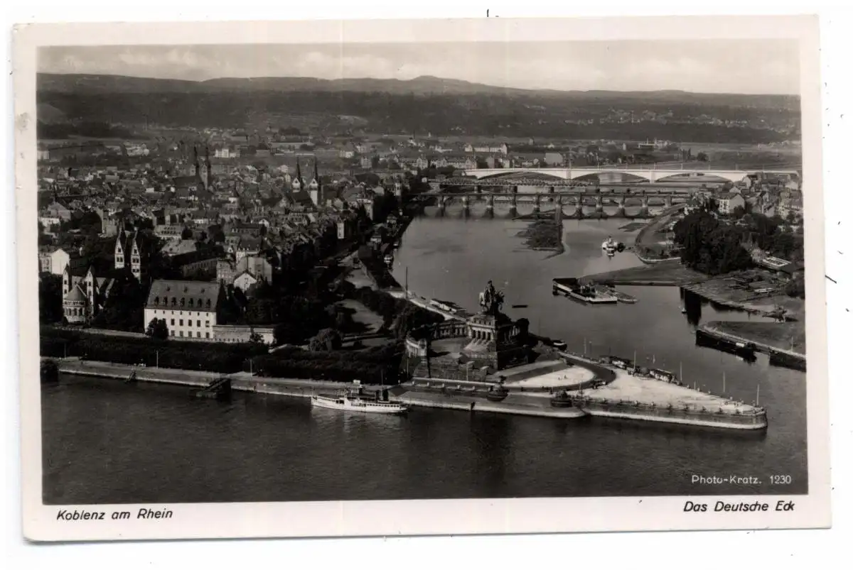 5400 KOBLENZ, Blick auf das Deutsche Eck, 1937, Verlag Kratz # 1230