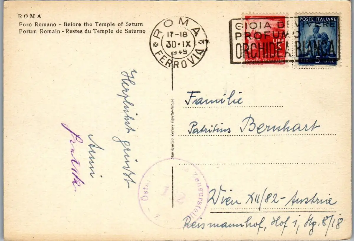 54109 - Italien - Rom , Foro Romano , Before the Temple of Saturn - gelaufen 1949