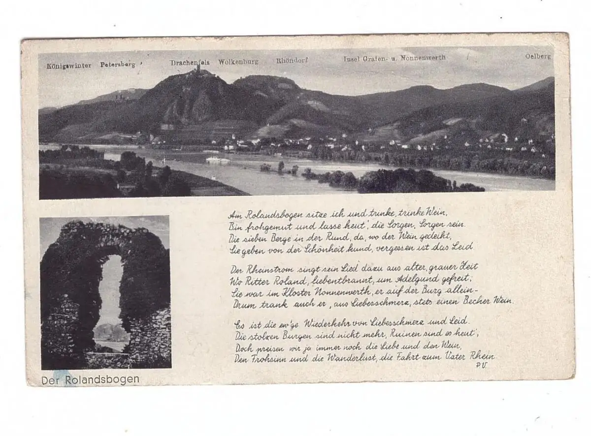 5480 REMAGEN - ROLANDSECK, Rolandsbogen, Panoramaansicht, Gedicht, 1955