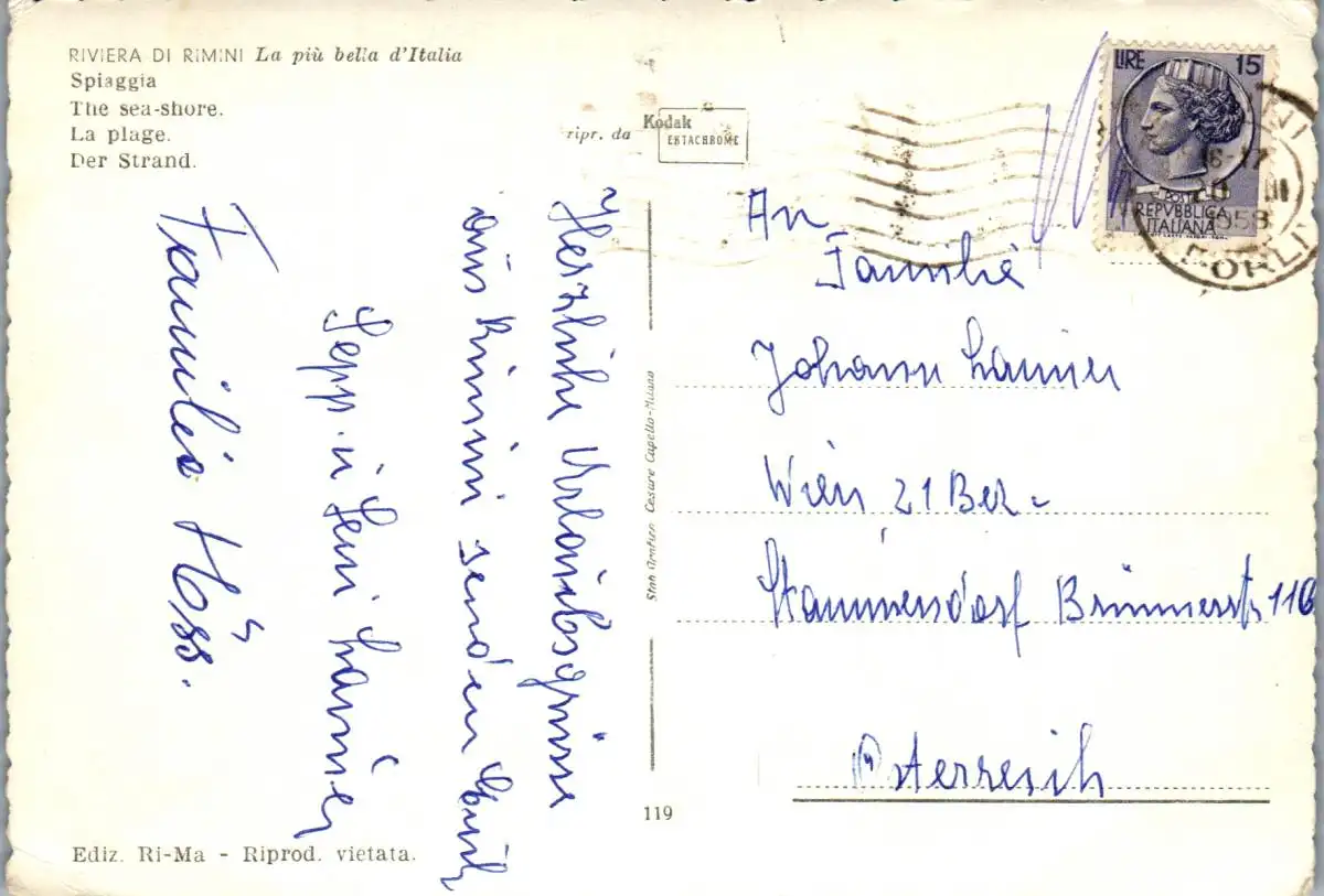 54985 - Italien - Rimini , Spiaggia - gelaufen 1958