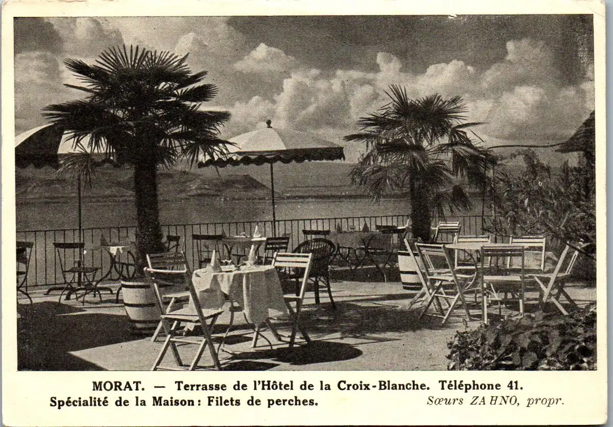 55066 - Schweiz - Morat , Murten , Terrasse de l'Hotel de la Croix Blanche , Kreuz Terrasse , Murtensee