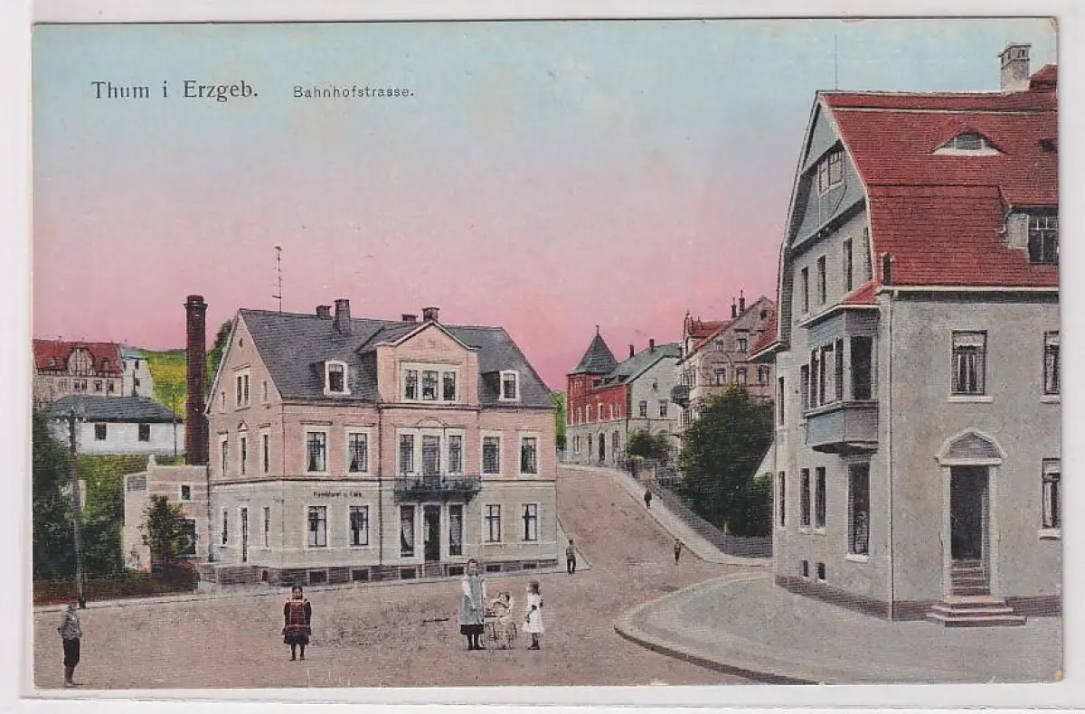 56912 Ak Thum im Erzgebirge Bahnhofstrasse um 1920