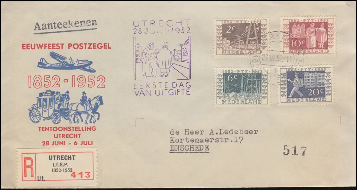 593-596 Reichstelegraphen-Satz auf Schmuck-R-FDC mit ESSt UTRECHT 28.6.1952