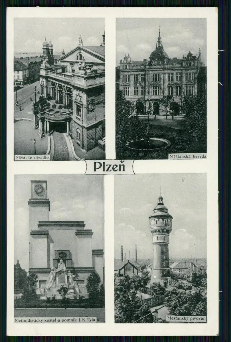 5x AK - Plzeň Pilsen Stadt - diverse Ansichten um 1930-40