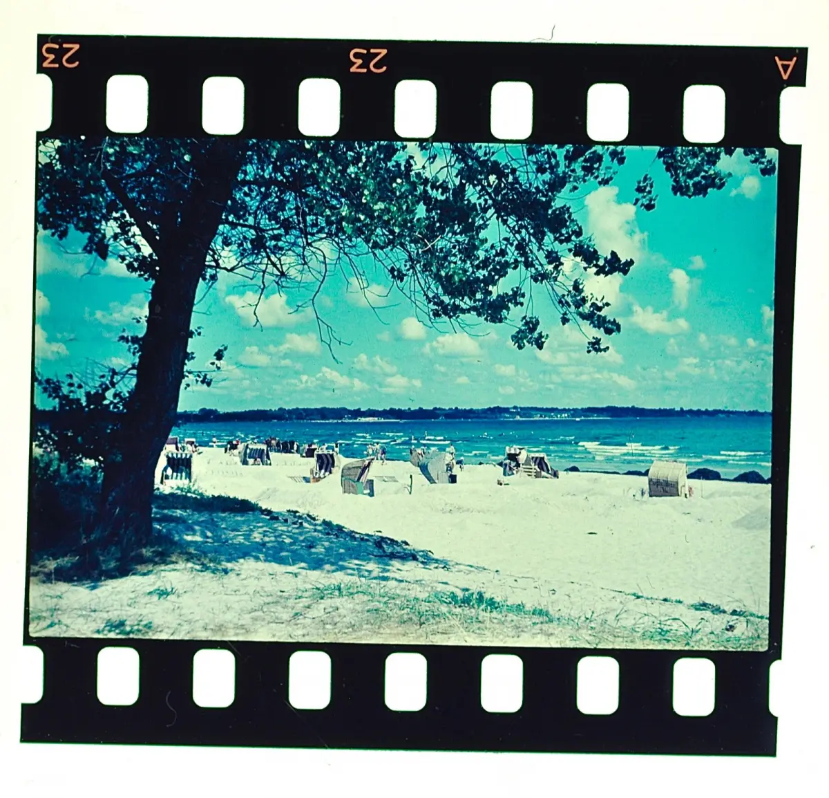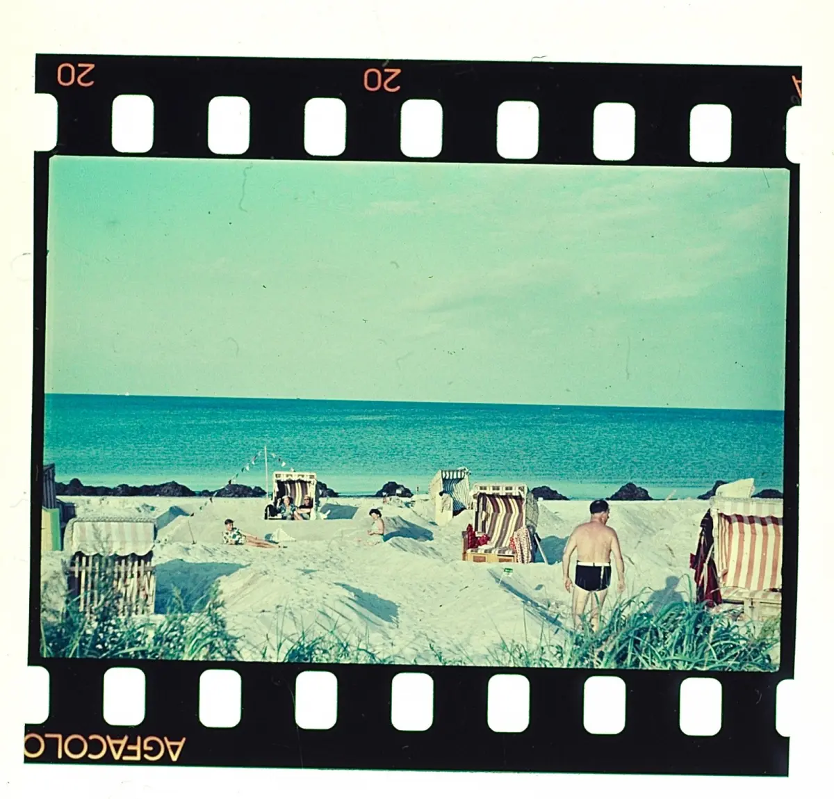 5x Original Fab-Dia 4x3,5cm Ostseebad Scharbeutz Strandhalle Badegäste 1960er