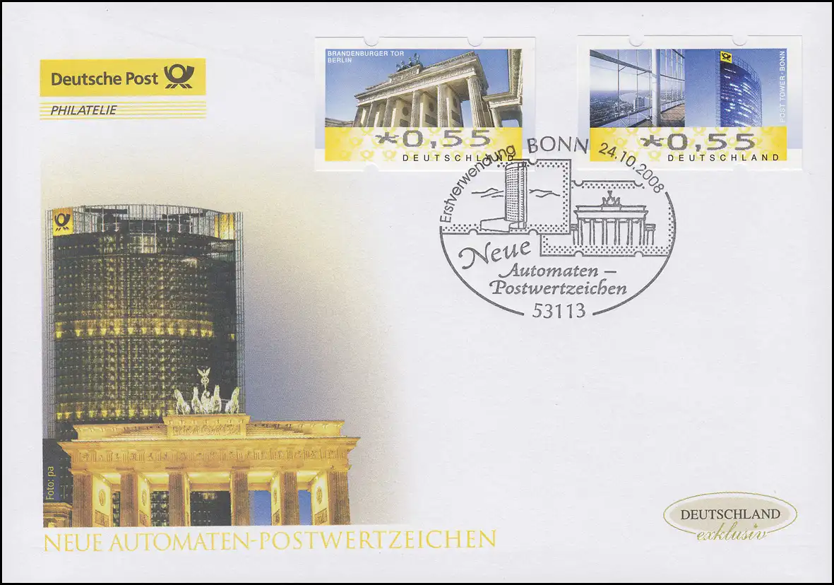 6-7 ATM-FDC Berlin/Bonn, zwei Werte auf Schmuck-FDC Deutschland exklusiv