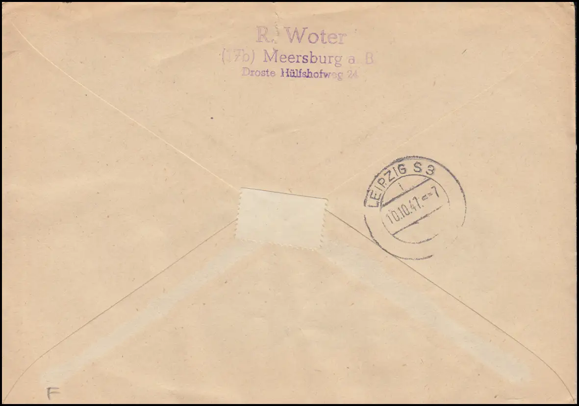 Portogerechte Mischfrankatur auf Brief im Fernverkehr als Einschreiben in die SBZ, Ankunftsstempel LEIPZIG 10.10.47. Bedarfserhaltung.