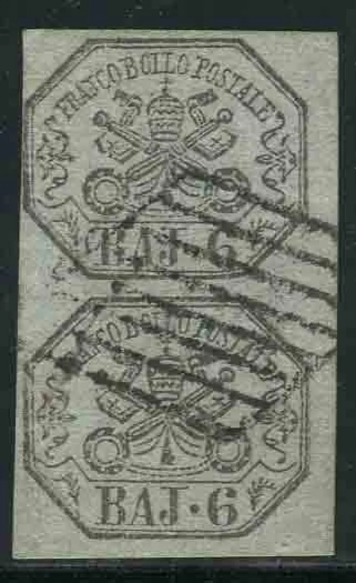 6 Baj grünlich grau Nr. 7 vertikales Paar gut marginiert - Päpstlich - 6 Baj grünlich grau Nr. 7 vertikales Paar gut marginiert Ann. am Grill - Kat. 250+ n. 29/5