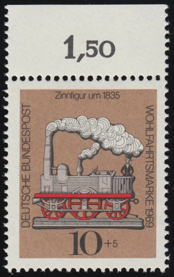 604 Wohlfahrt Zinnfiguren 10+5 Pf Eisenbahn ** Oberrand