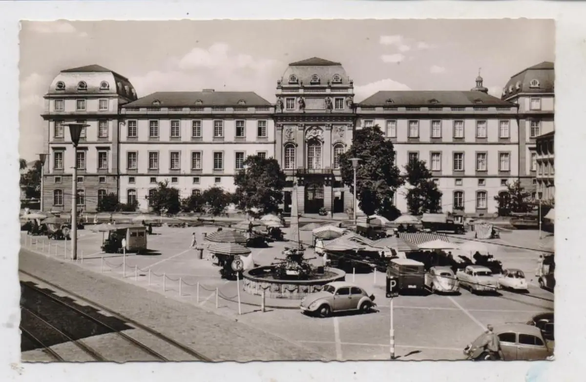 6100 DARMSTADT, Blick auf das Schloß, Markt, VW-Käfer, BMW ISETTA...