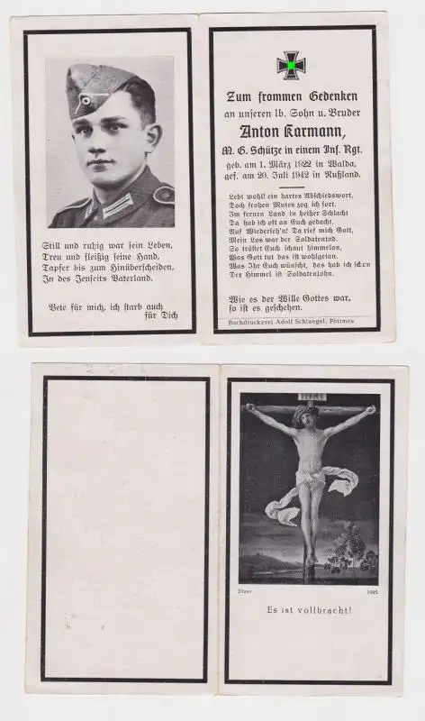61918 Sterbebild WK2 MG Sch?tze Infanterie Regiment gefallen in Russland 1942