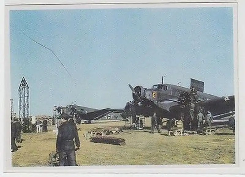 Motorenwechsel an Junkers Ju 52 Transportflugzeugen (mit Staffelabzeichen) auf einem Feldflughafen in Sizilien" ungelaufen, gute Erhaltung siehe Bild,