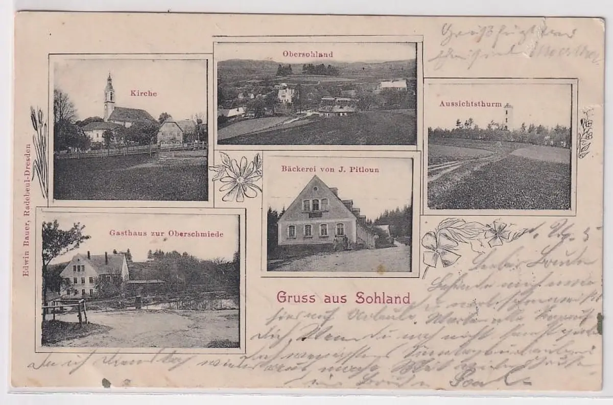 66127 Feldpost Ak Gruß aus Sohland Bäckerei, Gasthaus usw. 1916