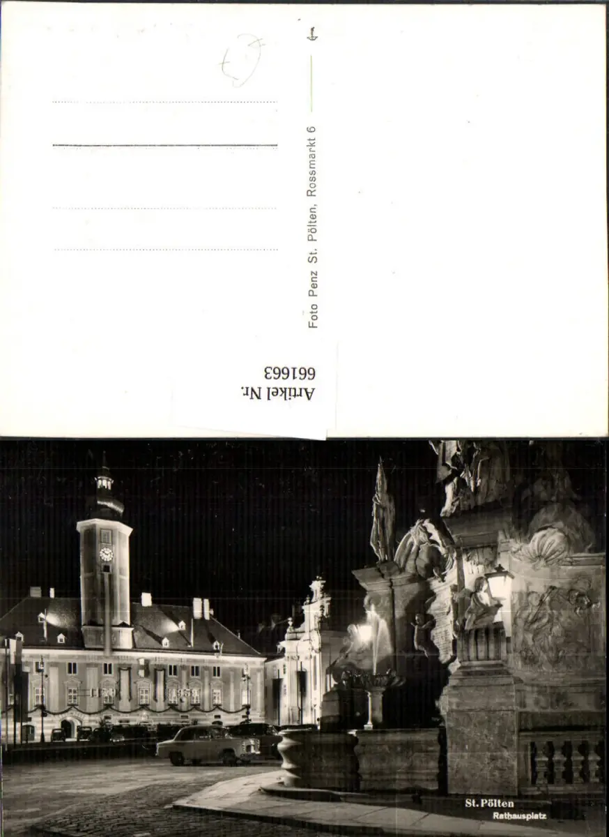 661663,Foto Ak St Pölten Rathausplatz b. Nacht