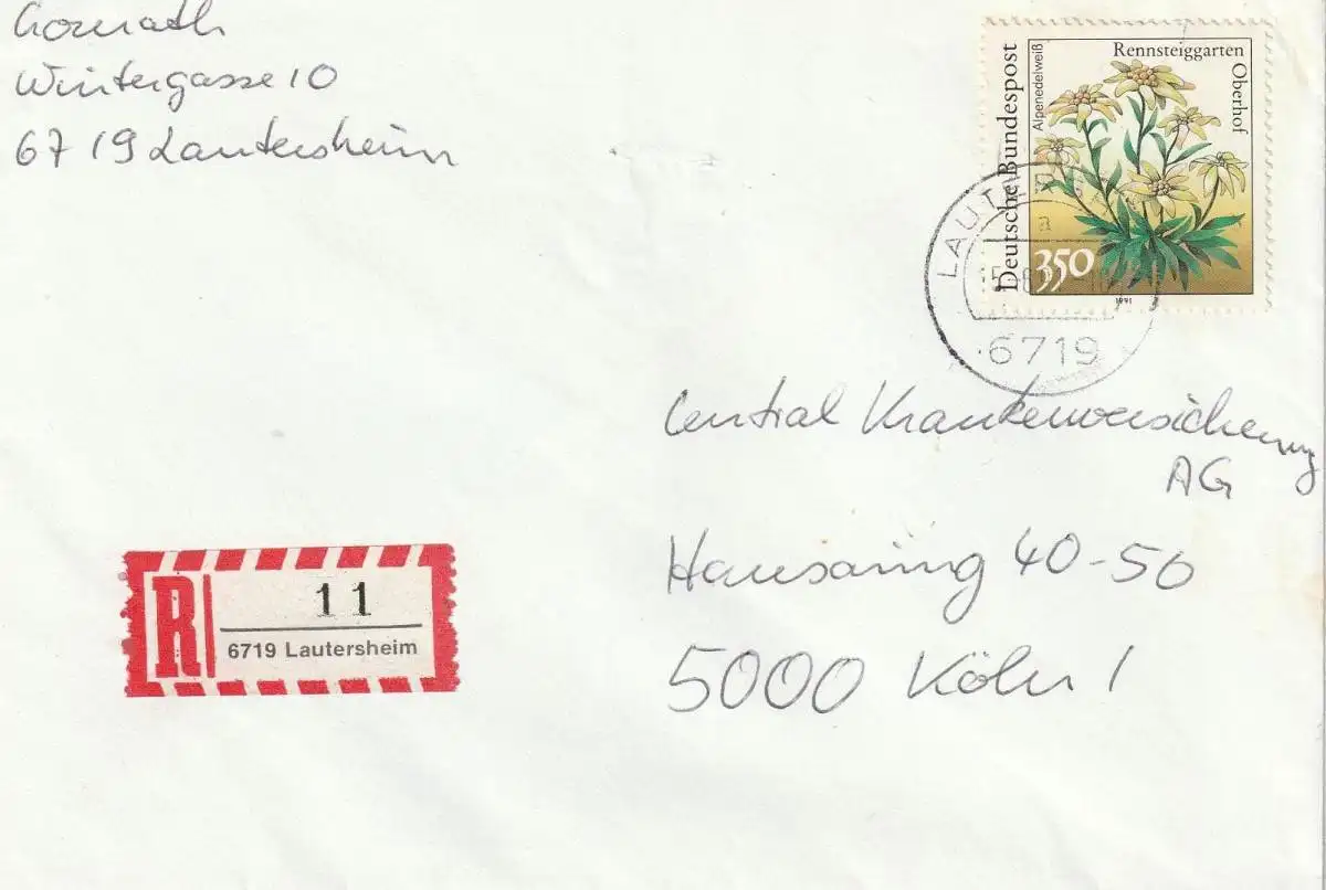 6719 GÖLLHEIM - LAUTERSHEIM, Postgeschichte, 2-stelliger R-Zettel, 1991