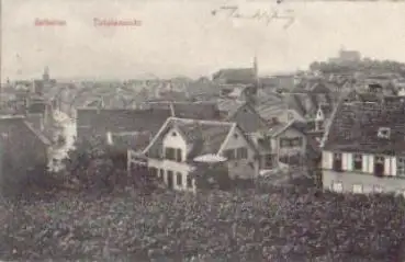 Kolonialwaren-Handlung P. Breth, Gaustraße mit Röhrbrunnen, Kriegerdenkmal