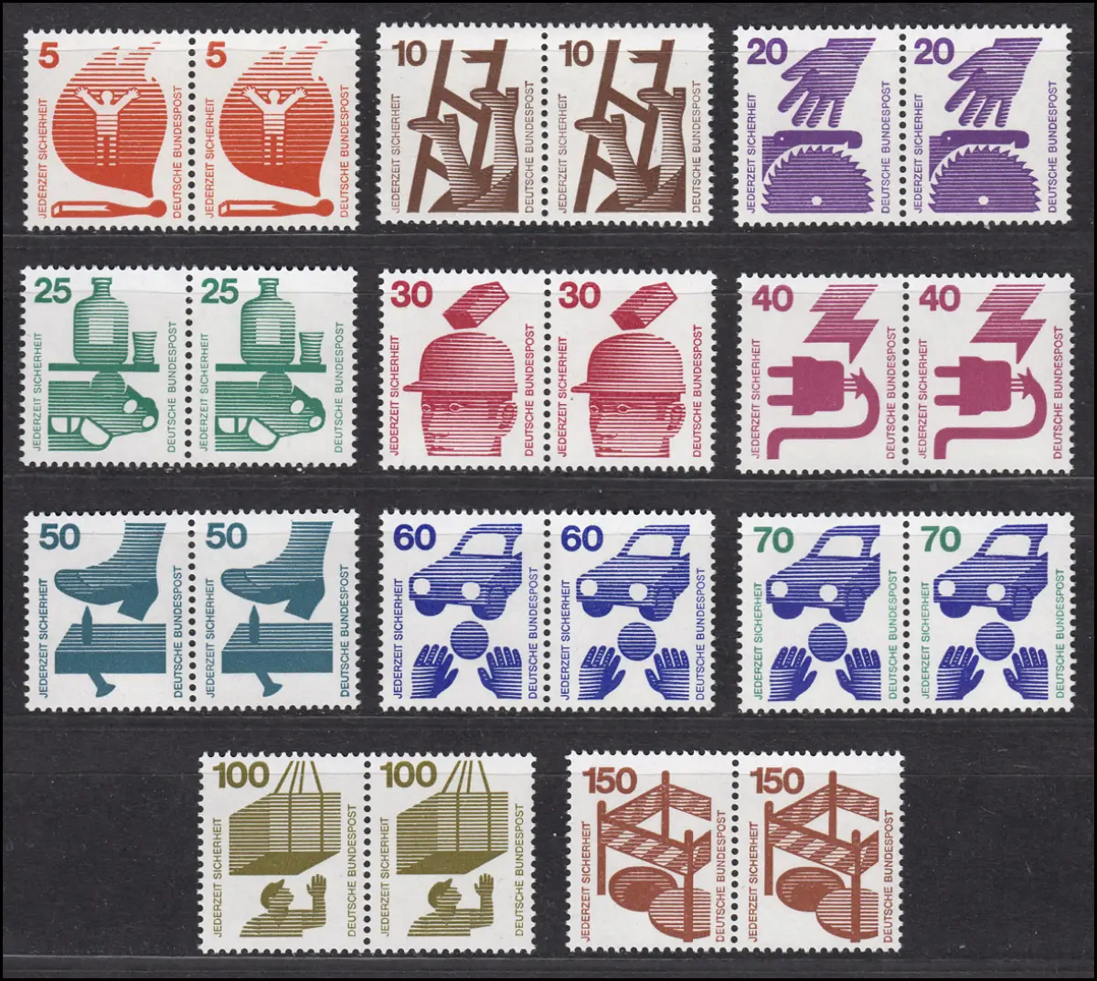 694 ff Unfallverhütung 11 Werte, waagerechte Paare, Satz postfrisch **