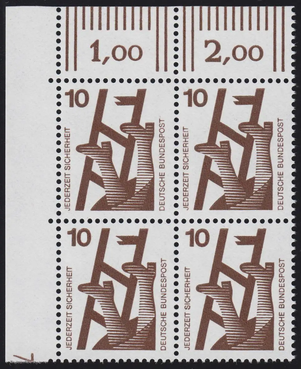 695 Unfallverhütung 10 Pf ** DZ 7, Feld 11, Eck-Vbl.