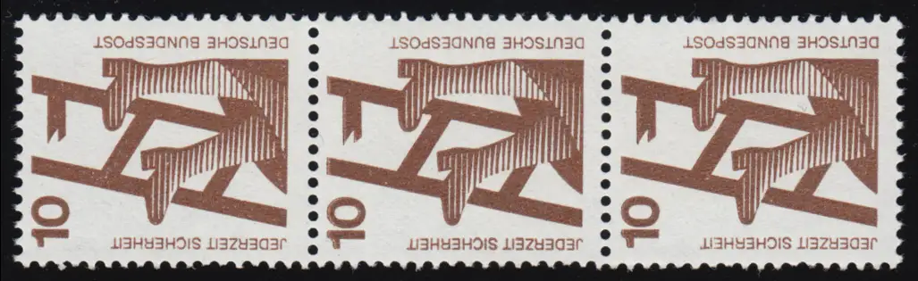 695a Unfall schwarze Nr. 10 Pf 500er-Rolle, 3er-Streifen + Nr. **