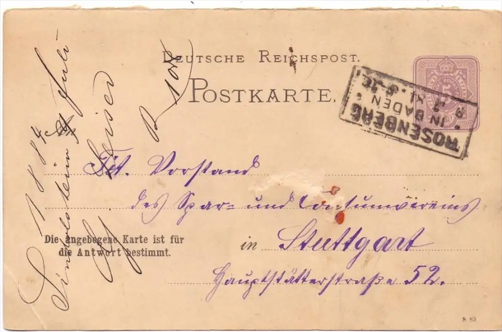 6964 ROSENBERG / Baden, Postgeschichte, Kastenstempel 1884