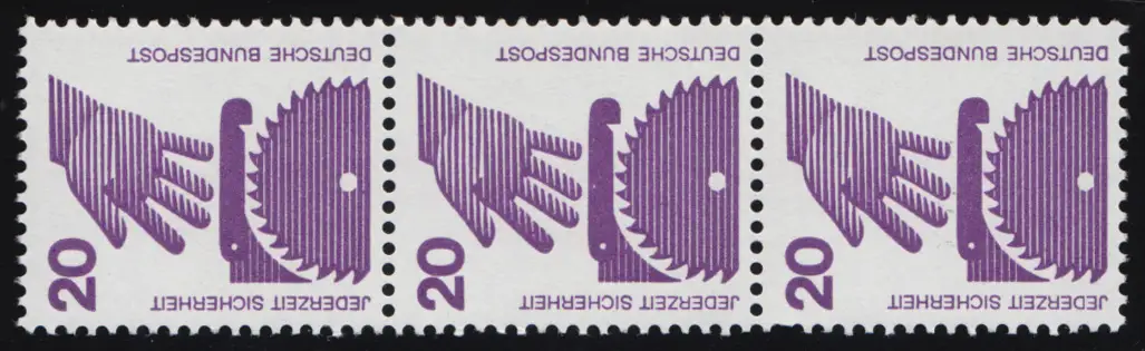 696a Unfall schwarze Nr. 20 Pf 400er-Rolle, 3er-Streifen + Nr. **