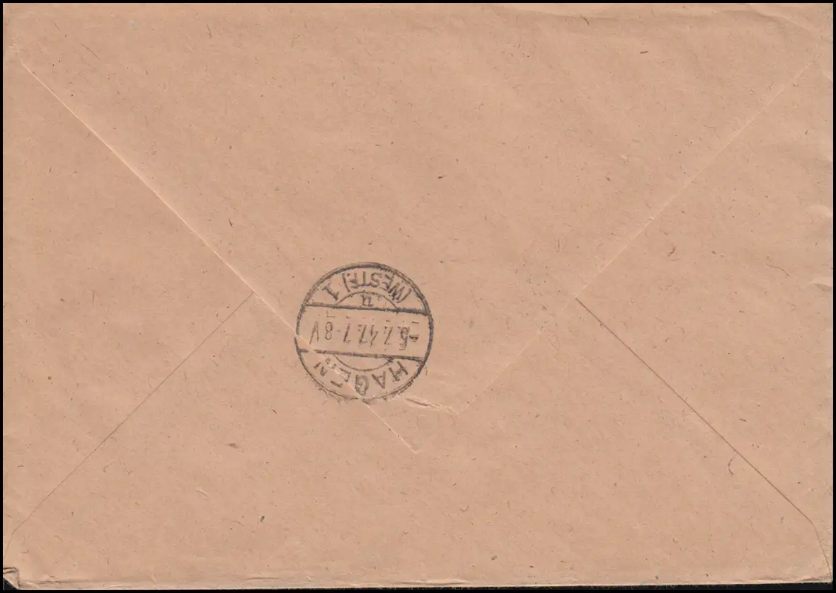Portogerechte Mischfrankatur auf Brief im Fernverkehr als Einschreiben, Ankunftsstempel HAGEN (WESTF.) 5.7.47