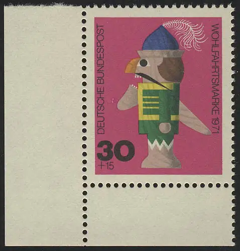 707 Wohlfahrt Altes Spielzeug 30+15 Pf Nußknacker ** Ecke u.l.
