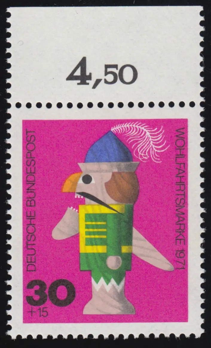 707 Wohlfahrt Altes Spielzeug 30+15 Pf Nußknacker ** Oberrand
