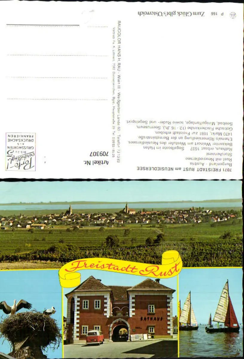 709307 Mehrbild AK Rust Rathaus Segelboote Storch Ansicht
