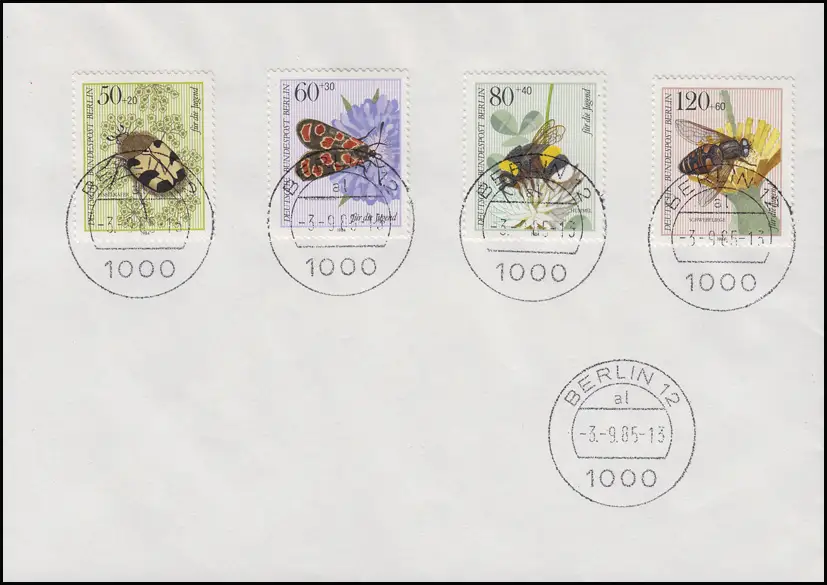 712-715 Jugend Bestäubungsinsekten 1984 - Satz auf Blanko-Brief BERLIN 3.9.85