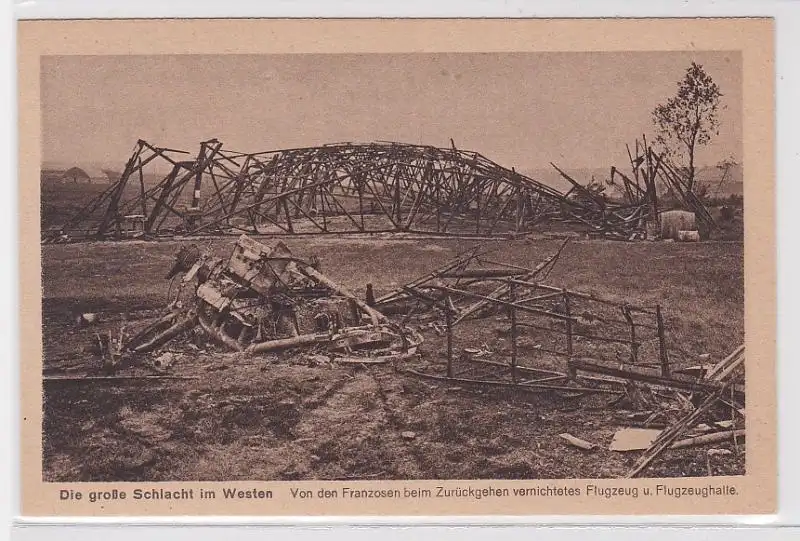 71518 Ak verbrannte französische Flugzeughalle 1. Weltkrieg
