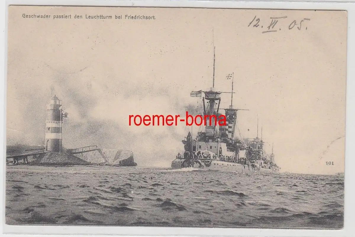 73683 Ak Geschwader passiert den Leuchtturm bei Friedrichsort 1905