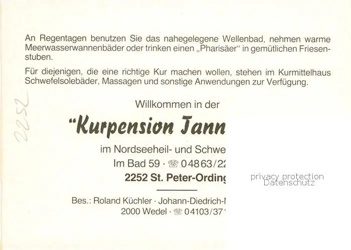 73849408 St_Peter-Ording Kurpension Tannenhof Restaurant Terrasse ADAC-Hotel St_Peter-Ording postalisch nicht gelaufen nach 1965 Werbekarte (keine Postkarte) Erhaltung siehe scans [FriedD77] Werbekarte (keine Postkarte)[Frierer ]