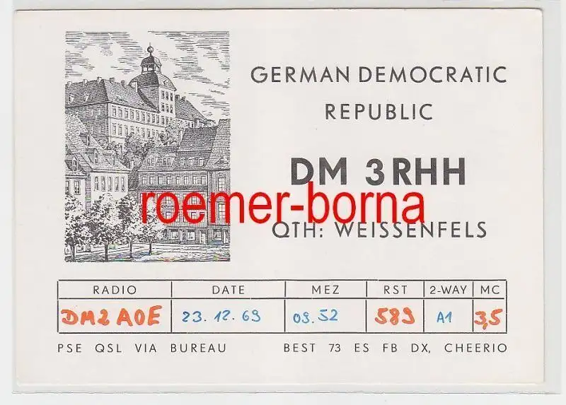 73854 QSL Karte Funker Funkamateur DDR Weissenfels DM3RHH 1969