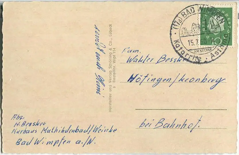 74206 Bad Wimpfen - Verlag Schöning & Co. Lübeck (E35472) gel. 1960