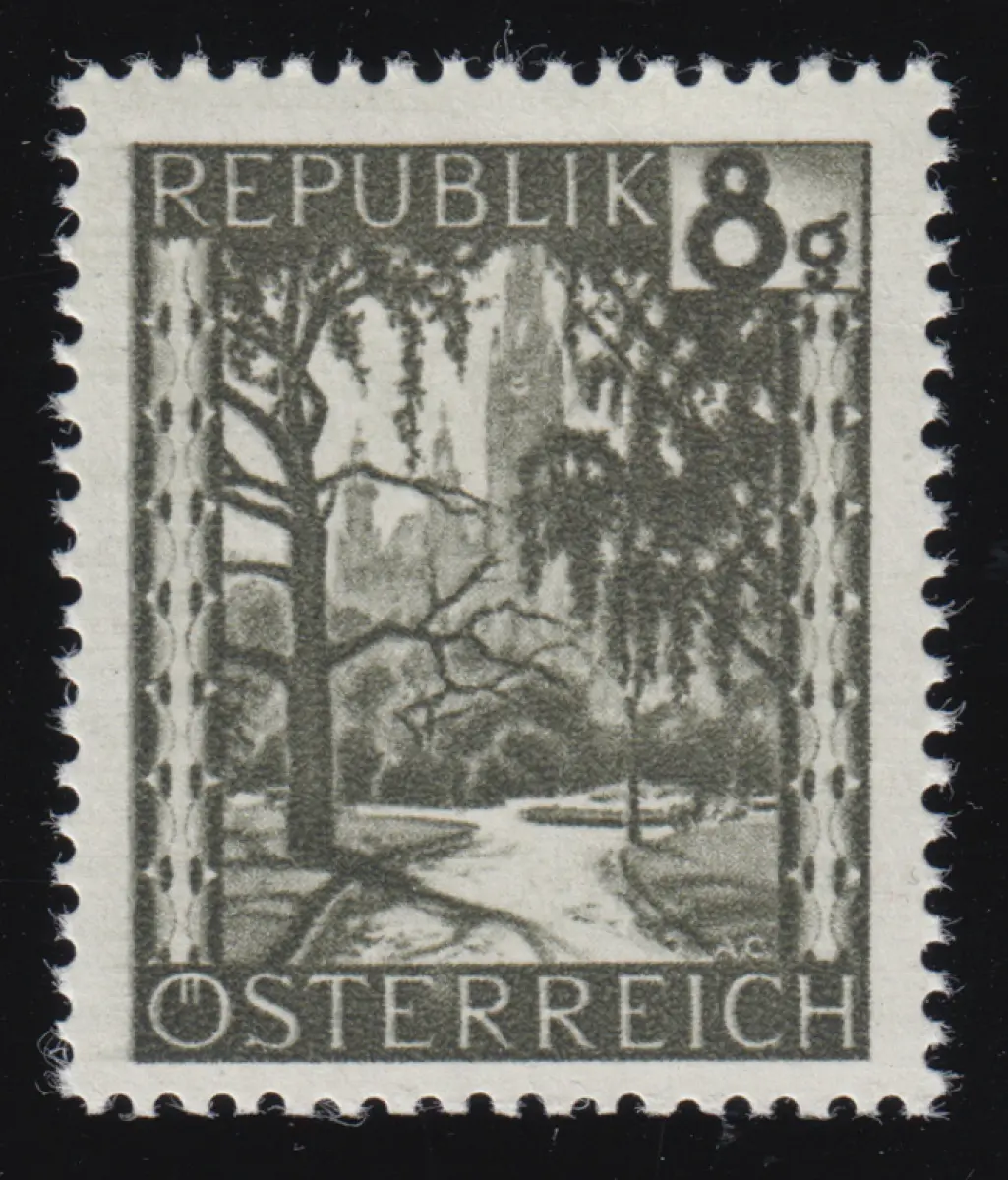744 Landschaften 8 g grün, Rathauspark /Wien, postfrisch **