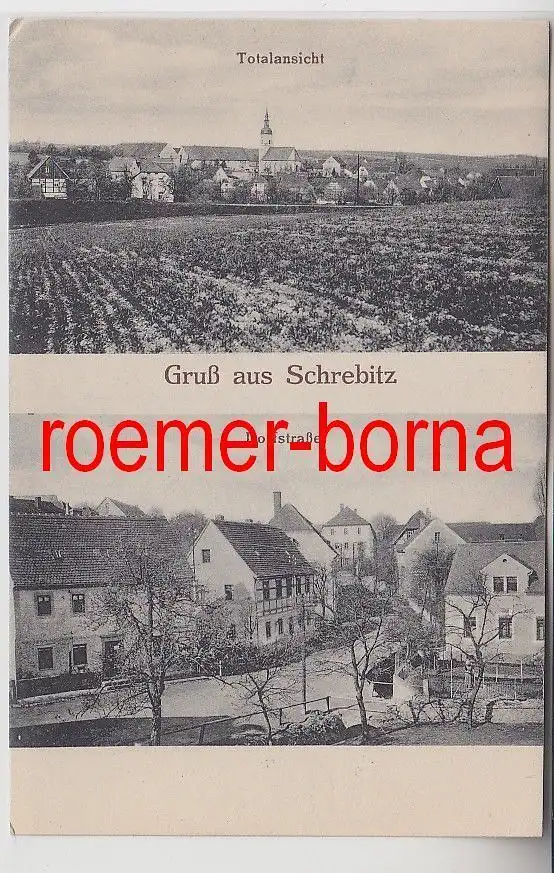76341 Mehrbild Ak Schrebitz Totalansicht und Dorfstrasse um 1920