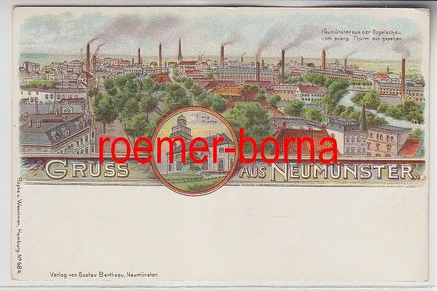 Neumünster aus der Vogelschau vom evang. Thurm aus gesehen, Evang. Kirche ungelaufen guter Zustand, siehe Bild