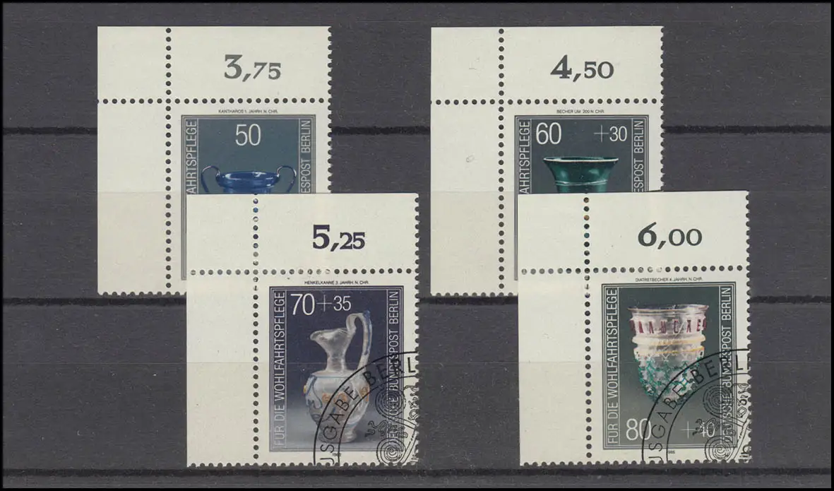 765-768 Wofa Kostbare Gläser 1986: Ecken oben links, Satz mit ESSt BERLIN