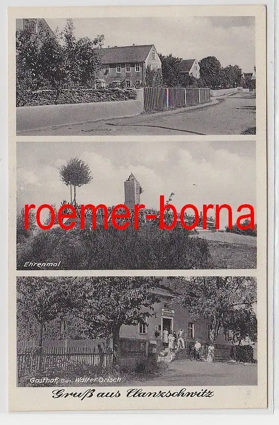 76558 Mehrbild Ak Gruß aus Clanzschwitz Gasthof, Ehrenmal usw. um 1930