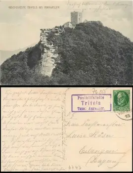 76855 Trifels Taxe: Annweiler Posthilfsstelle auf AK Veste o 11.7.1915