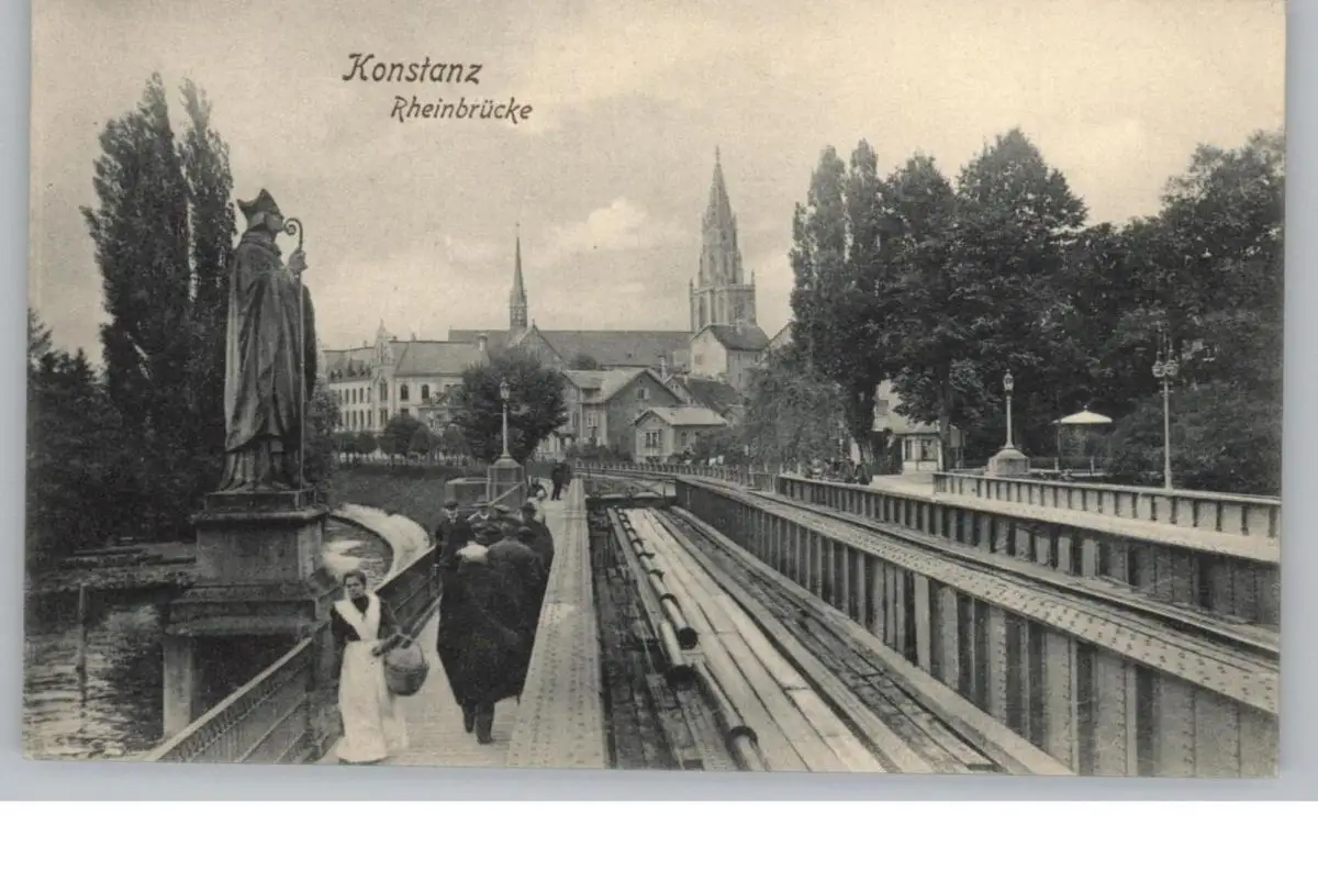 7750 KONSTANZ, Rheinbrücke, belebte Szene, 1906, Trenkler